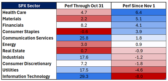 SPX Sectors – Recent Rotation Away from Prior Leaders