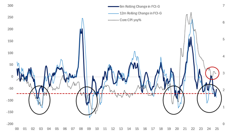 Risks to policy stimulus appear skewed to the upside. Additional tariff relief or targeted household transfers – such as potential stimulus payments tied to tariff offsets – could add meaningfully to aggregate demand. For example, a $2,000 transfer to households earning under $75k would amount to roughly $150 billion in additional fiscal support.
