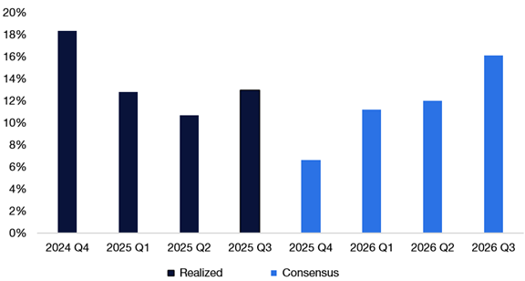 Earnings momentum is broadening beyond a narrow group of mega-cap leaders. What began as an AI-led profit cycle is increasingly diffusing across sectors, reinforcing market breadth and supporting a more durable earnings expansion.