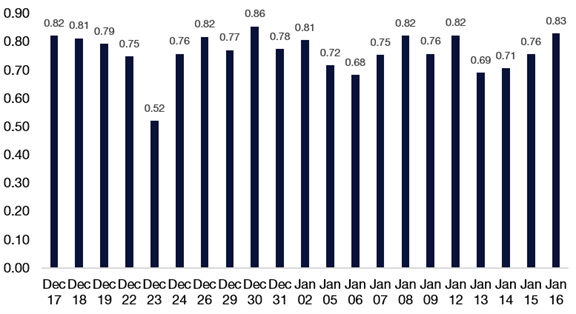 Source: Bloomberg as compiled by Citadel Securities, GMI, as of December 18th, 2025. Figures are for illustrative purposes only. Past performance figures do not guarantee future results.