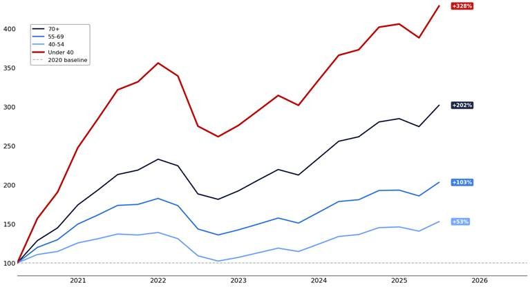 Participation is also broadening across generations. Households under 40 have increased equity and fund ownership by more than 300% since 2020, reinforcing the structural shift toward retail-led markets.