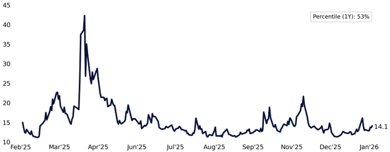 Institutional client behavior reflects this shift as well. Institutional clients at Citadel Securities continue to use options as the primary vehicle to position into upcoming catalysts – most notably earnings – either to add targeted length into specific reports or to selectively hedge names and sectors where outcomes may be more binary. Tenors remain very near dated, underscoring the tactical nature of this positioning.