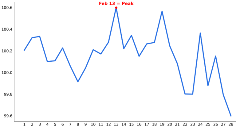 SPX February Performance by Day ~ 100 years.