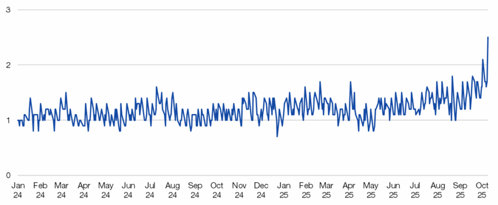 Source: Citadel Securities, as of October 24th, 2025. Figures are for illustrative purposes only. Past performance figures do not guarantee future results.Citadel Securities Total Shares Executed