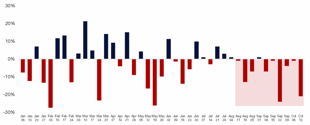 Source: Bloomberg as compiled by Citadel Securities, as of October 24th, 2025. Figures are for illustrative purposes only. Past performance figures do not guarantee future results.VIX Monthly Performance