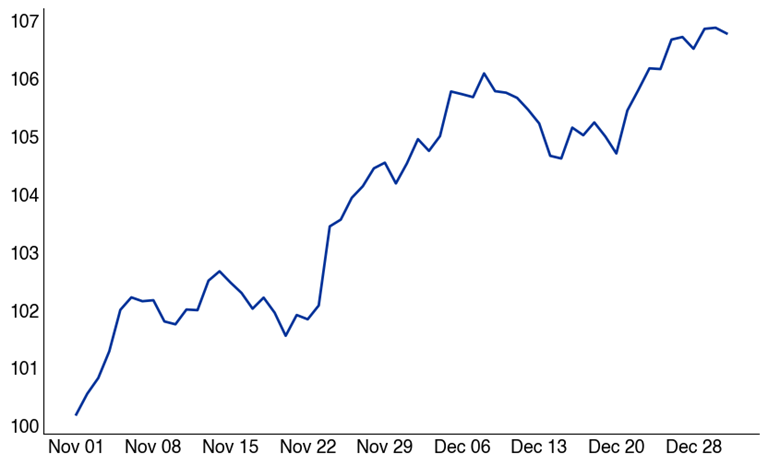 Source: Bloomberg as compiled by Citadel Securities, as of October 24th, 2025. Figures are for illustrative purposes only. Past performance figures do not guarantee future results.NDX Daily November Performance