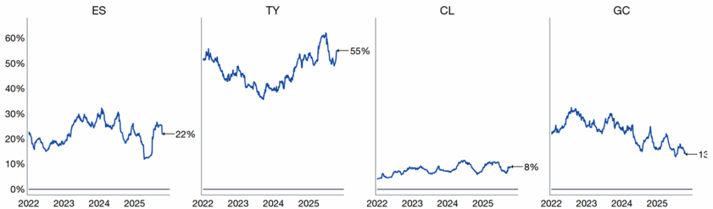 Source: Bloomberg as compiled by Citadel Securities, as of October 24th, 2025. Figures are for illustrative purposes only. Past performance figures do not guarantee future results.IV. Retail Positioning — Persistent Strength