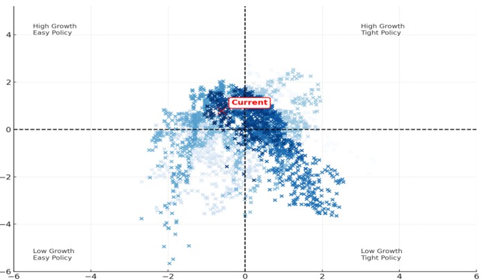 THE PRICE ACTION IN GLOBAL FIXED INCOME OUTSIDE THE US IS TELLING. We have seen a meaningful sell off in front end rates across Europe, Canada, Sweden, and most notably in Australia, as central banks have concluded cutting cycles and markets are now starting to price hikes in some regions. The RBA’s experience is a warning shot across the bow to central banks (most clearly the Fed) to not extend policy rate cuts too much in the face of high fiscal deficits, elevated neutral rates and before inflation has durably returned to target. Since the RBA cut rates 75bps from 4.35% to 3.60%, inflation has accelerated meaningfully and is likely to print between 0.9-1.1% QoQ (trimmed mean) in Q4, which annualizes to 3.6%-4.4%, a substantive acceleration…at a time when the unemployment rate (which had risen gradually following the hiking cycle) is declining…loan growth is accelerating…and household spending is picking up alongside house prices. As a result, Australian interest rate forwards now price nearly two hikes by the end of 2026. If the market decides rates hikes are appropriate for the US economy late next year, and a captive Fed is unable to deliver them, then the risk is that long-end yields will do the work for the Fed in delivering the required financial conditions tightening. My colleague Frank Flight’s framework for macro regime classification (decomposing FCI into growth and policy factors) shows we are currently priced for a high-growth / easy-policy regime (chart above). This is the best environment for stocks…and the 2026 growth outlook can absolutely support these valuations…but I see the policy lever as less likely to continue to deliver a tailwind next year. A transition from high-growth / easy-policy to high-growth / tight-policy (via FCI, not policy rates) could be challenging for markets. The tails are getting fatter.