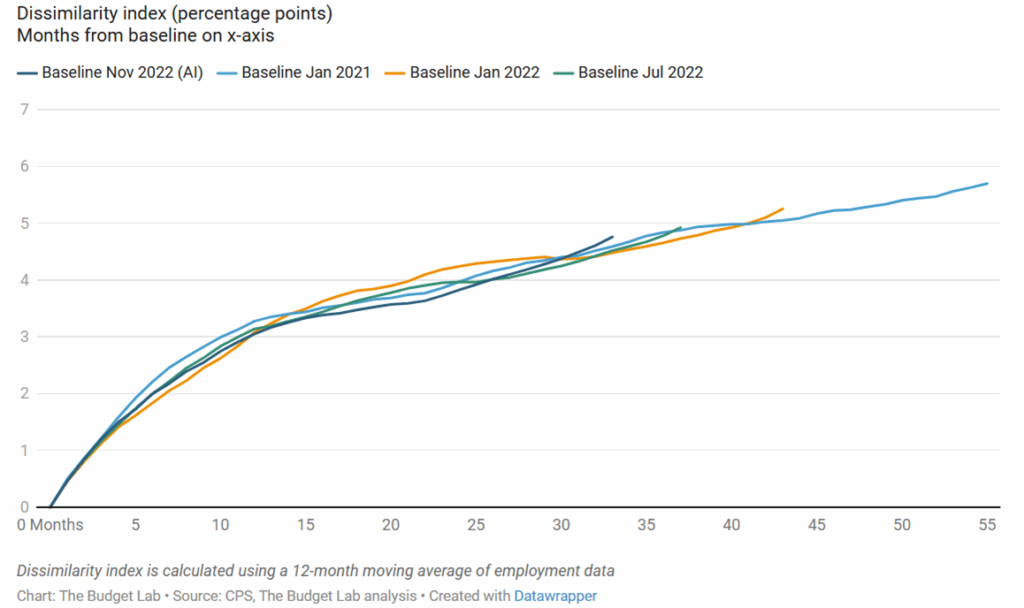 Gimbel, M., Kinder, M., Kendall, J. & Lee, M., 2025. “Evaluating the impact of AI on the labor market: Current state of affairs” The Budget Lab at Yale, 1 October, https://budgetlab.yale.edu/research/evaluating-impact-ai-labor-market-current-state-affairs