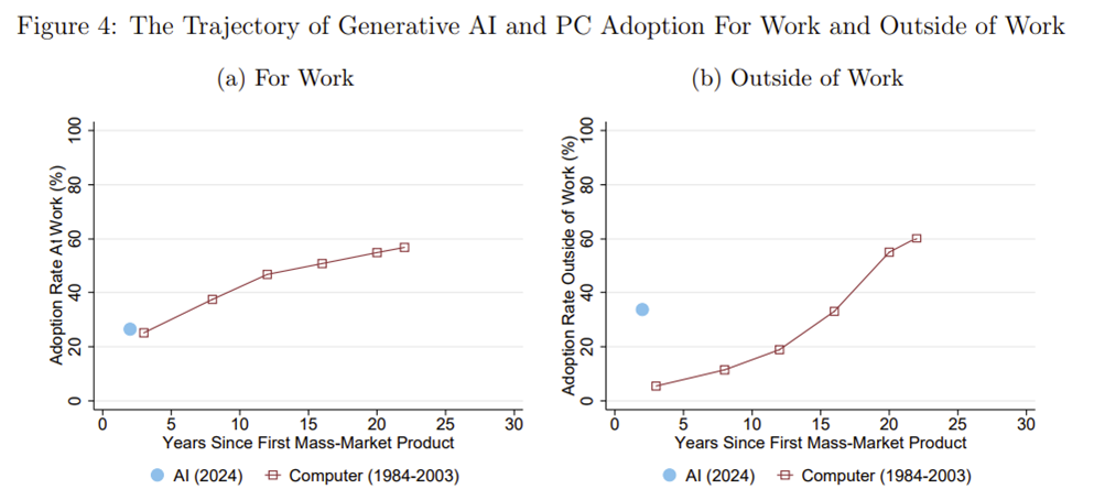 Trajectory of Generative AI vs PC Adoption For Work and Outside of work